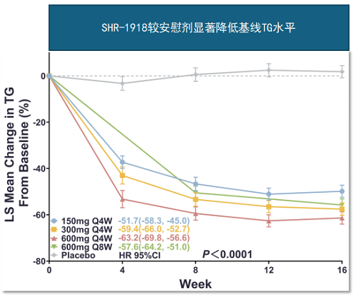 主要终点和次要终点分别为基线至16周时LDL-C与TG的百分比变化。